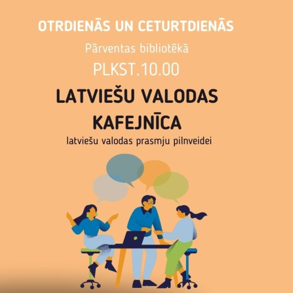 "Latviešu valodas kafejnīca" ir bezmaksas nodarbības latviešu valodas lietojuma pilnveidei tiem iedzīvotājiem, kuru dzimtā valoda nav latviešu.Tās notiek brīvā, sarunām draudzīgā atmosfērā par ikdienas tēmām – apģērba izvēli, ēdiena gatavošanu, ģimeni, hobijiem un daudz ko citu. Nodarbības vada brīvprātīgās dabinieces un bibliotēkas vadītāja Solvita Štekerhofa. Aicinām ikvienu, kas vēlas runāt latviski, bet jūtas nepārliecināts par savām valodas prasmēm un līdz šim nav atradis piemērotu vietu, kur to darīt. Nodarbībām aicinām pieteikties, rakstot uz e-pastu [email protected] vai zvanot - tel.nr. 371 63680072.