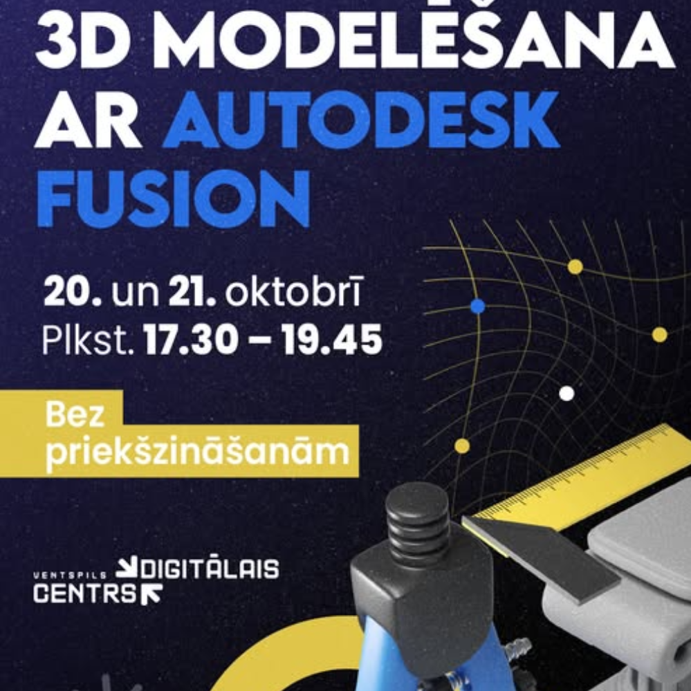Ventspils Digitālais centrs aicina ikvienu interesentu piedalīties apmācībās un gūt ieskatu Autodesk Fusion vidē, kas sniedz iespēju uzzīmēt un sagatavot reālai izgatavošanai jebkādu priekšmetu – no rotaļlietas līdz mēbelei. Tāpat ar šo programmu ir iespēja sagatavot projektu lāzergravēšanai vai drukāšanai ar 3D printeri. Dalībnieki apgūs, kā veidot 2D skices, pārvērst tās 3D objektos, izmantos pamatfunkcijas un parametrisko pieeju. Programma paredzēta ikvienam interesentam bez priekšzināšanām 3D modelēšanā, tā apvieno teorētiskās zināšanas ar praktiskiem uzdevumiem pasniedzēja vadībā. Apmācības norisināsies tiešsaistes platformā Zoom 20. un 21. oktobrī plkst. 17.30 – 19.45. Pieteikties iespējams līdz 15. oktobrim, aizpildot anketu šeit: https://adre.se/anketafusion. Mācību programma: Ievads un darba vide: Programmas iespējas, saskarnes pārskats, failu pārvaldība mākoņvidē. Skices pamati: Skices plaknes, pamatelementi, ierobežojumi, dimensijas. 3D modelēšanas pamati: Extrude, revolve, fillet, pattern, shell. Darbs ar ķermeņiem un parametrisko modelēšanu: Combine, mirror, parametriskā pieeja. Eksports un noslēguma uzdevums: STL eksports, vienkārša projekta izveide. Pirms apmācībām dalībniekiem nepieciešams uzstādīt Autodesk Fusion bezmaksas programmu. Nepieciešamības gadījumā tiks nosūtīta instrukcija, kā to izdarīt.