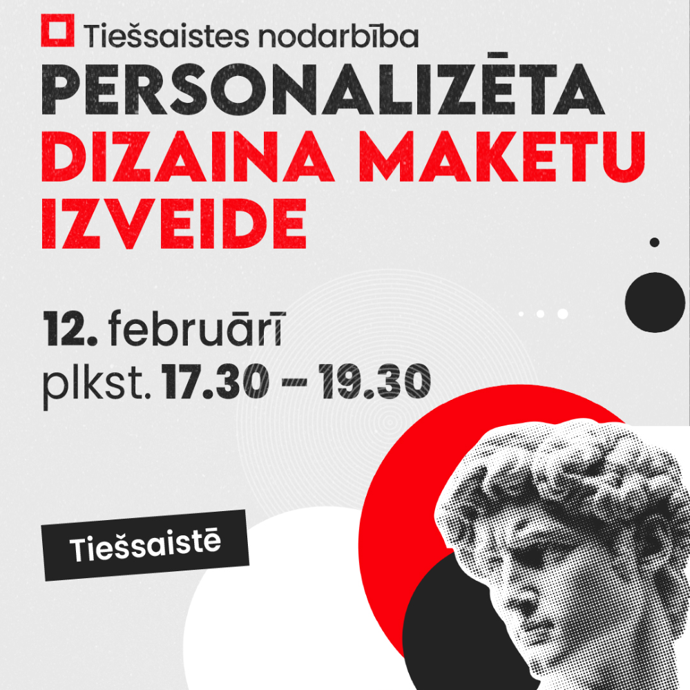 Ventspils Digitālais centrs aicina ikvienu interesentu piedalīties īsā un praktiskā tiešsaistes nodarbībā, kur būs iespēja apgūt dizaina izveidi T-krekliem, krūzēm un citiem priekšmetiem, kā arī radīt personalizētus vizuālos elementus, piemēram, ģimenes portretus un ilustrācijas ar mākslīgā intelekta (MI) rīkiem. Nodarbībā dalībnieki bez iepriekšējas pieredzes iemācīsies izveidot vizuāli pievilcīgu dizainu, kā arī sagatavot maketu drukai. Nodarbība notiks tiešsaistes platformā Zoom 12. februārī plkst. 17.30 – 19.30. Pieteikties iespējams līdz 10. februārim, aizpildot anketu šeit: www.adre.se/anketamidizains. Nodarbības “Personalizēta dizaina maketu izveide” apmācību programma: Ievads digitālajā maketēšanā: Digitālā maketa jēdziens, pielietojums, apdrukas piemēri. Digitālā maketa pamati: Izmēri, formāti, izšķirtspēja, krāsu pamati, teksta salasāmība. Digitālo dizaina rīku iepazīšana: Bezmaksas rīki, darba vide, attēlu/teksta ievietošana, veidņu izmantošana. MI izmantošana dizainā: Attēlu/portretu veidošana, ideju formulēšana, ētika un autortiesības. Maketa sagatavošana apdrukai: Pārbaude, eksports, pasūtīšanas ieteikumi. Kursa dalībniekiem nepieciešams dators, stabils interneta pieslēgums, aktīvs Google konts, kā arī piekļuve Zoom konferenču programmai. Kursu vadīs Dace Kamela - Ventspils Digitālā centra pasniedzēja ar 20 gadu pieredzi grafiskajā dizainā un maģistra grādu ekonomikā, pedagoģijā un vēsturē. Dalības maksa 14,40 EUR. Mācību noslēgumā dalībnieki saņems Ventspils Digitālā centra apliecību. Lai nostiprinātu apgūtās zināšanas, nodarbības ieraksts dalībniekiem būs pieejams 7 dienas. Papildu informācija Ventspils Digitālajā centrā, Akmeņu ielā 3, rakstot uz e-pastu [email protected] vai zvanot pa tālruni 63607607. Aktuālā informācija par Digitālā centra piedāvājumu pieejama sociālajos tīklos Facebook un Instagram @vdcentrs, kā arī mājas lapā www.digitalaiscentrs.lv.