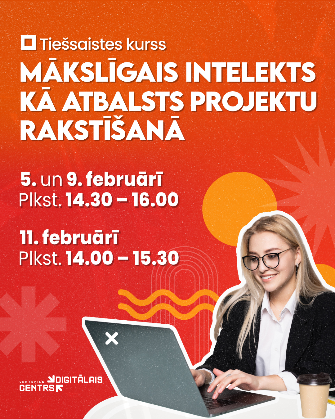 Kursa dalībniekiem nepieciešams dators, stabils interneta pieslēgums, kā arī piekļuve Zoom konferenču programmai. Kursu vadīs Vita Vītola-Lapiņa - projektu eksperte, digitālo prasmju speciāliste. Dalības maksa 34,96 EUR. Pēc apmācībām kursa dalībniekiem būs pieejamas kursa prezentācijas. Mācību noslēgumā dalībnieki saņems Ventspils Digitālā centra apliecību.