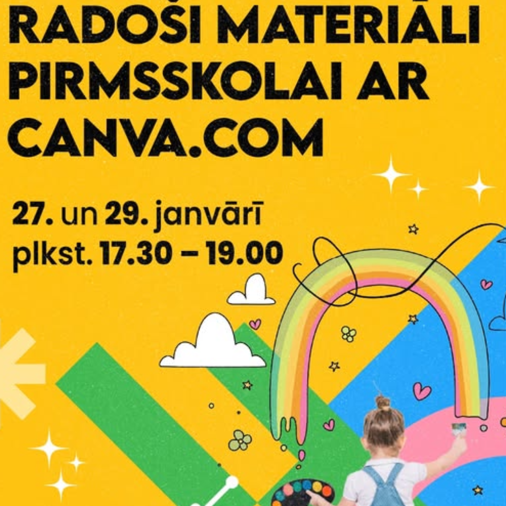 Ventspils Digitālais centrs piedāvā pirmsskolas izglītības iestāžu pedagogiem piedalīties apmācībās, kur būs iespēja iepazīt Canva.com materiāla krātuvi un dizaina veidnes, apgūt mācību materiālu veidošanu, kā arī Canva mākslīgā intelekta iespējas pirmsskolas vecumam atbilstoša satura radīšanai. Apmācībās tiks sniegti praktiski padomi, kas palīdzēs ietaupīt laiku un vienkāršot mācību materiālu sagatavošanu. Dalībniekiem nepieciešamas pamazināšanas darbā ar Canva.com. Apmācības norisināsies tiešsaistes platformā Zoom 27. un 29. janvārī plkst. 17.30 - 19.00. Pieteikties apmācībām iespējams līdz 21. janvārim, aizpildot anketu šeit: www.adre.se/radosimaterialianketa. Apmācību programma: Attēlu ģenerēšana un vizuālo materiālu radīšana. Dizaina automatizācija un uzlabošana. Video un animāciju veidošana. Efektīvāka platformas lietošana. Integrēto rīku un sagatavju izmantošana. Mācību materiālu sagatavošana atbilstoši pirmsskolas vecuma posmam. Sadarbība un kopstrāde. Ārējo MI servisu integrēšana Canva.com. Prakstiskais darbs. Kursa dalībniekiem nepieciešams dators, stabils interneta pieslēgums, kā arī piekļuve Zoom konferenču programmai. Kursu pasniegs Anna Beāte Būmane - Latvijas Universitātes pasniedzēja ar maģistra grādu programmā "Tehnoloģiju inovācijas un dizains izglītībai". Dalības maksa 24,65 EUR. Mācību noslēgumā dalībnieki saņems Ventspils Digitālā centra apliecību. Ja kursa dalībniekam nebūs iespēja pievienoties kādai no tiešsaistes nodarbībām, tad nodarbības ierakstus un mācību materiālus būs iespēja apskatīt Ventspils Digitālā centra mācību platformā, kur tie būs pieejami 6 mēnešus, lai dalībnieki jebkurā laikā varētu atsvaidzināt zināšanas par apgūto Papildu informācija Ventspils Digitālajā centrā, Akmeņu ielā 3, rakstot uz e-pastu [email protected] vai zvanot pa tālruni 63607607. Aktuālā informācija par Digitālā centra piedāvājumu pieejama sociālajos tīklos Facebook un Instagram @vdcentrs, kā arī mājas lapā www.digitalaiscentrs.lv.