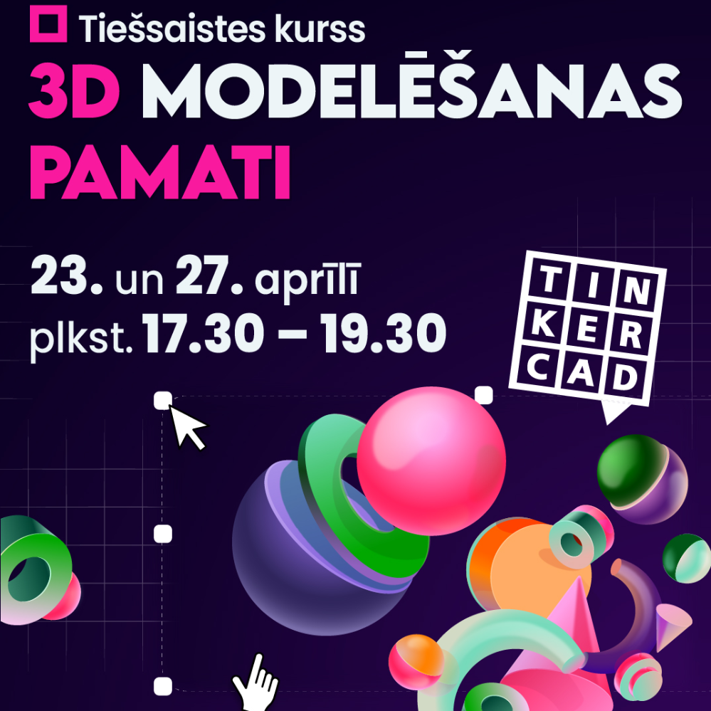 Digitālais centrs aicina apgūt 3D modelēšanas pamatus Ventspils Digitālais centrs aicina ikvienu interesentu piedalīties apmācībās, kur būs iespēja apgūt trīsdimensiju modelēšanas pamatus, izmantojot populāro tiešsaistes rīku Tinkercad. Kursā dalībnieki soli pa solim iepazīsies ar 3D modelēšanas pamatprincipiem, iemācīsies veidot vienkāršus trīsdimensiju objektus, apgūs darbu ar ģeometriskām formām un rīkiem, kā arī gūs izpratni par to, kā sagatavot modeļus izmantošanai 3D drukā. 3D modelēšanas prasmes kļūst arvien nozīmīgākas gan izglītībā, gan dažādās nozarēs – sākot no dizaina un arhitektūras līdz pat inženierzinātnēm un produktu izstrādei. Kurss iesācējiem sniegs labu pamatu turpmākai prasmju attīstīšanai šajā jomā. Apmācības norisināsies 23. un 27. aprīlī plkst. 17.30 – 19.30 tiešsaistes platformā Zoom. Pieteikties iespējams līdz 20. aprīlim, aizpildot anketu šeit: https://adre.se/anketa3dmodelesana. Kursa saturs: 3D modelēšanas pamati. Resursi un programmas: 3D objektu lietošana no interneta arhīviem, 3D objektu apstrāde. Materiāli un gaismas - TinkerCad un Blender. 3D modeļu apstrāde Organiskas formas 3D modelēšanā. Darbs ar izmēriem un simetriju. 3D modeļu sagatavošana 3D printēšanai. Kursa dalībniekiem nepieciešams dators, stabils interneta pieslēgums, aktīvs Google konts, kā arī piekļuve Zoom konferenču programmai. Kursu vadīs Dace Kamela - Ventspils Digitālā centra pasniedzēja ar 20 gadu pieredzi grafiskajā dizainā un maģistra grādu ekonomikā, pedagoģijā un vēsturē. Dalības maksa 24 EUR. Mācību noslēgumā dalībnieki saņems Ventspils Digitālā centra apliecību. Ja kursa dalībniekam nebūs iespēja pievienoties kādai no tiešsaistes nodarbībām, tad nodarbības ierakstus un mācību materiālus būs iespēja apskatīt Ventspils Digitālā centra mācību platformā, kur tie būs pieejami 6 mēnešus, lai dalībnieki jebkurā laikā varētu atsvaidzināt zināšanas par apgūto. Papildu informācija Ventspils Digitālajā centrā, Akmeņu ielā 3, rakstot uz e-pastu [email protected] vai zvanot pa tālruni 63607607. Aktuālā informācija par Digitālā centra piedāvājumu pieejama sociālajos tīklos Facebook un Instagram @vdcentrs, kā arī mājas lapā www.digitalaiscentrs.lv.